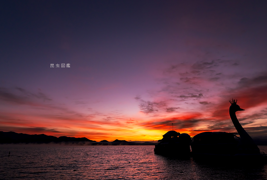 寄り添うカメとはくちょうの夜明けはマイナス8度、冷えました。